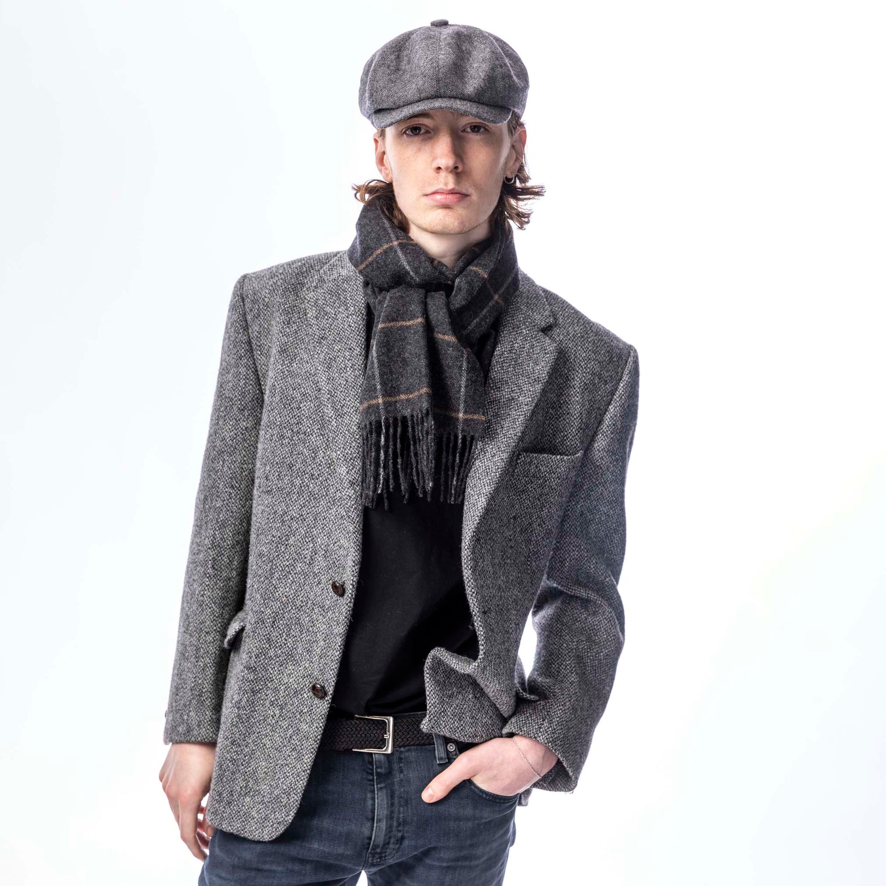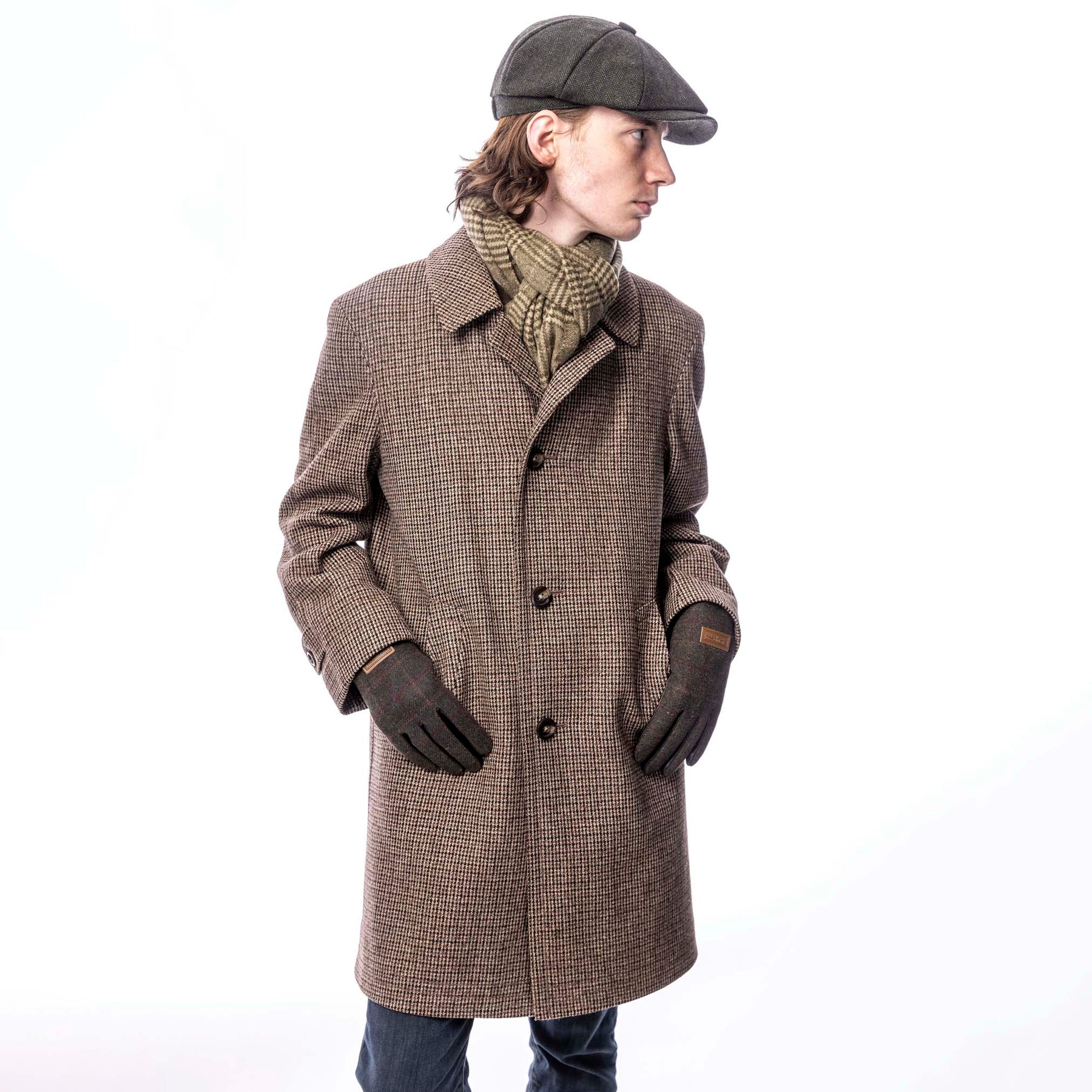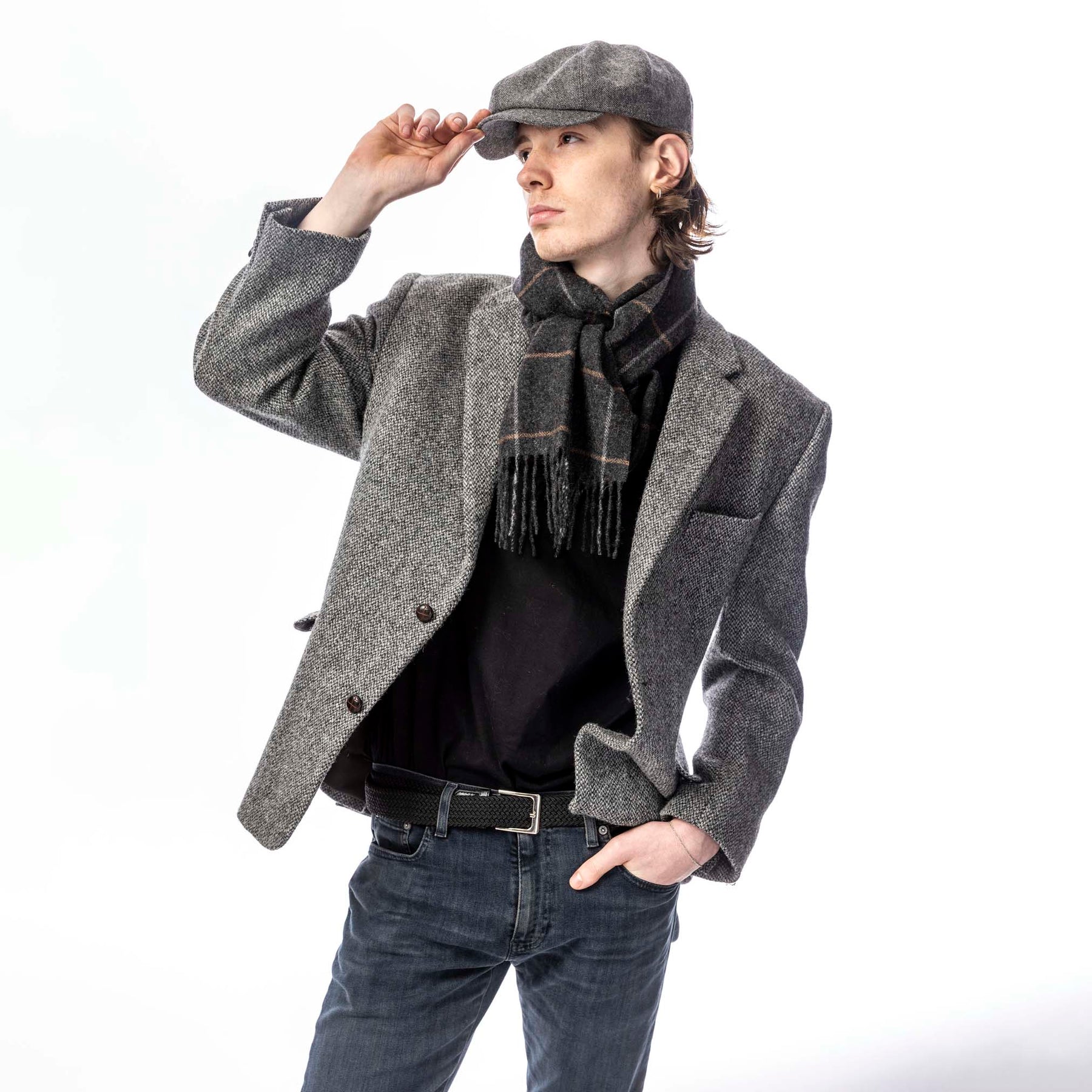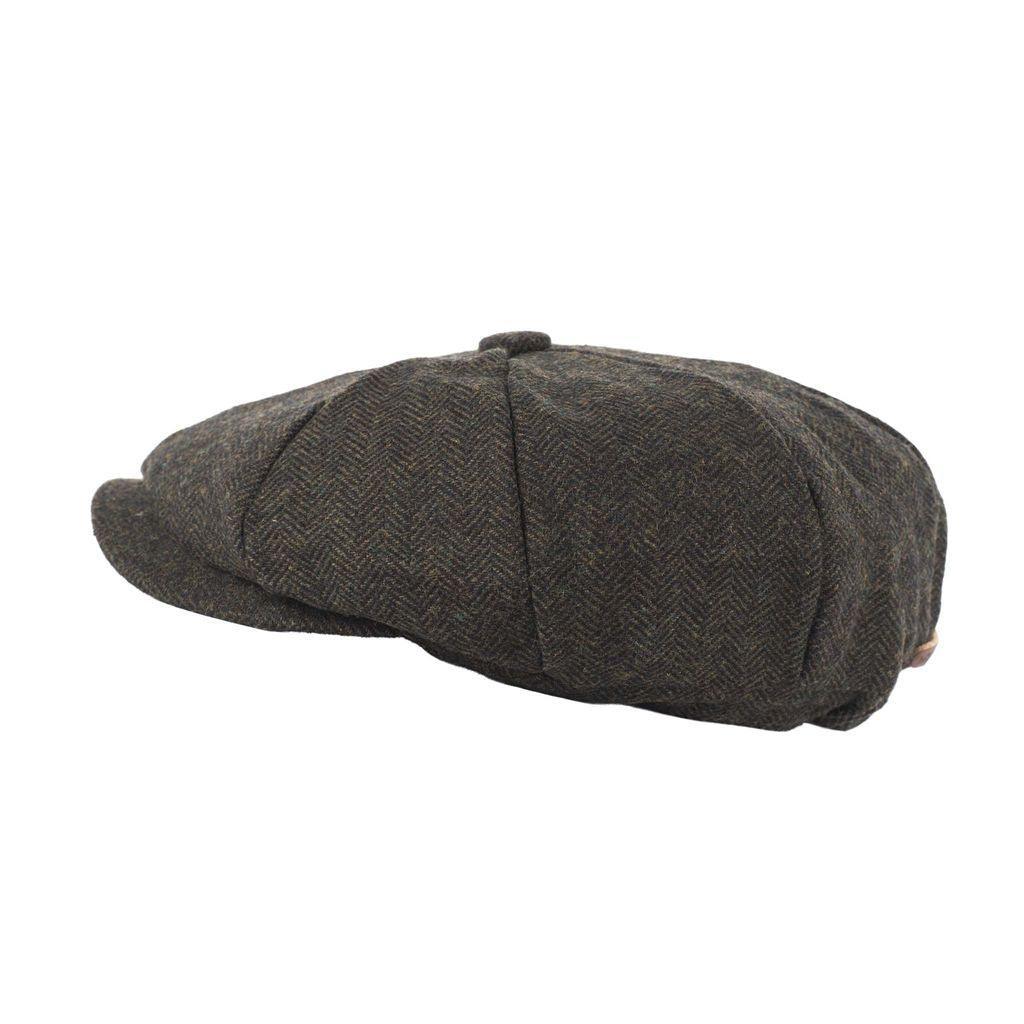 Elevate your style with our Herringbone Tweed Newsboy Cap. Inspired by the iconic shape, this cap adds a modern twist to the classic style. Made from a high-quality wool mix tweed, it offers both durability and a touch of sophistication to any look. The cap features a comfortable elasticated back, allowing for an easy and adjustable fit. Its herringbone pattern exudes timeless elegance, while the black quilted lining provides added warmth and comfort. Complete with a genuine leather Heritage Traditions branded tab, hand-stitched on the back, this newsboy cap is a perfect choice for those seeking a blend of style and tradition. Available in one size that adjusts to fit most head sizes.